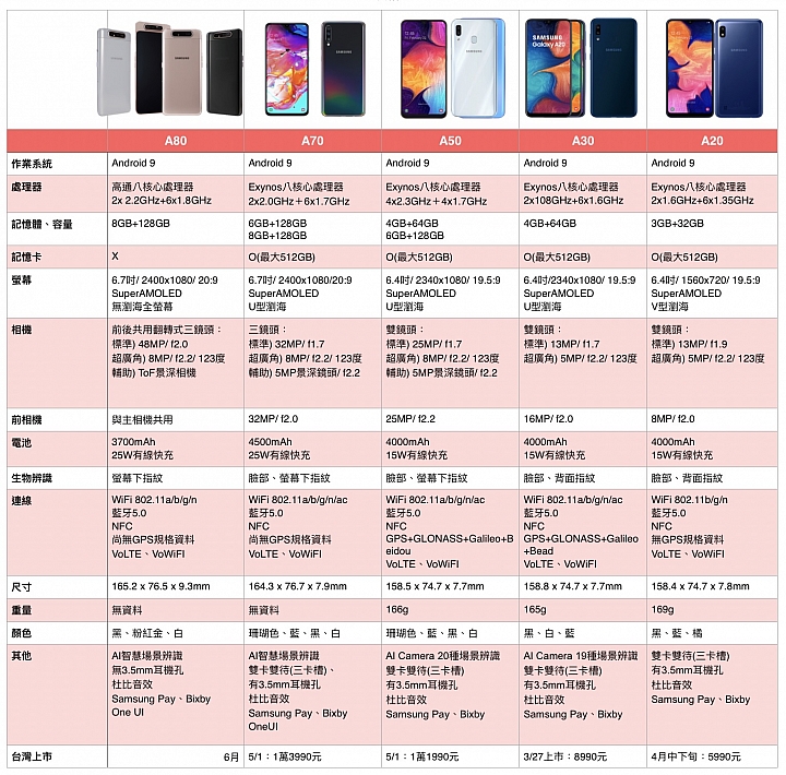 這裡我們專心來看Galaxy A80跟A70。