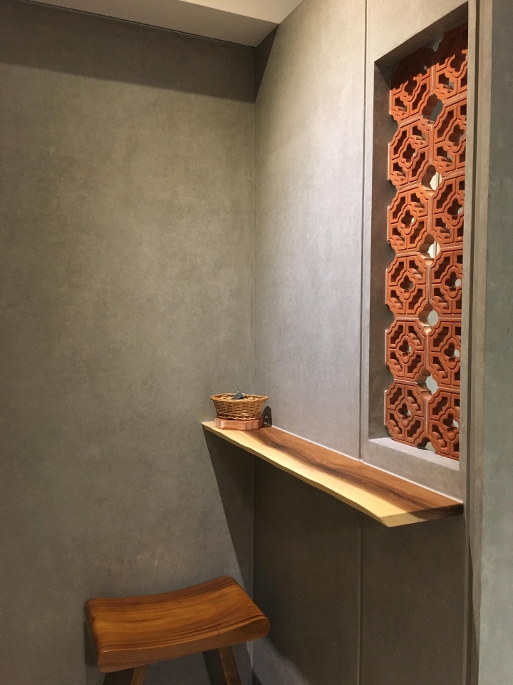 最後是師父、設計師和我三人現場討論調配出滿意的灰藍,