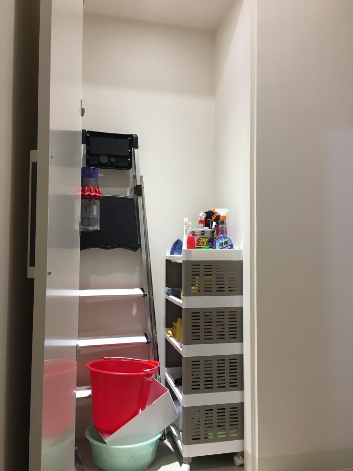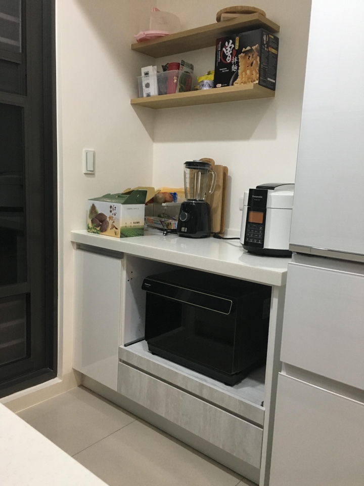 像是做了個工具間給壁掛式吸塵器、抽拉盤給烤爐。