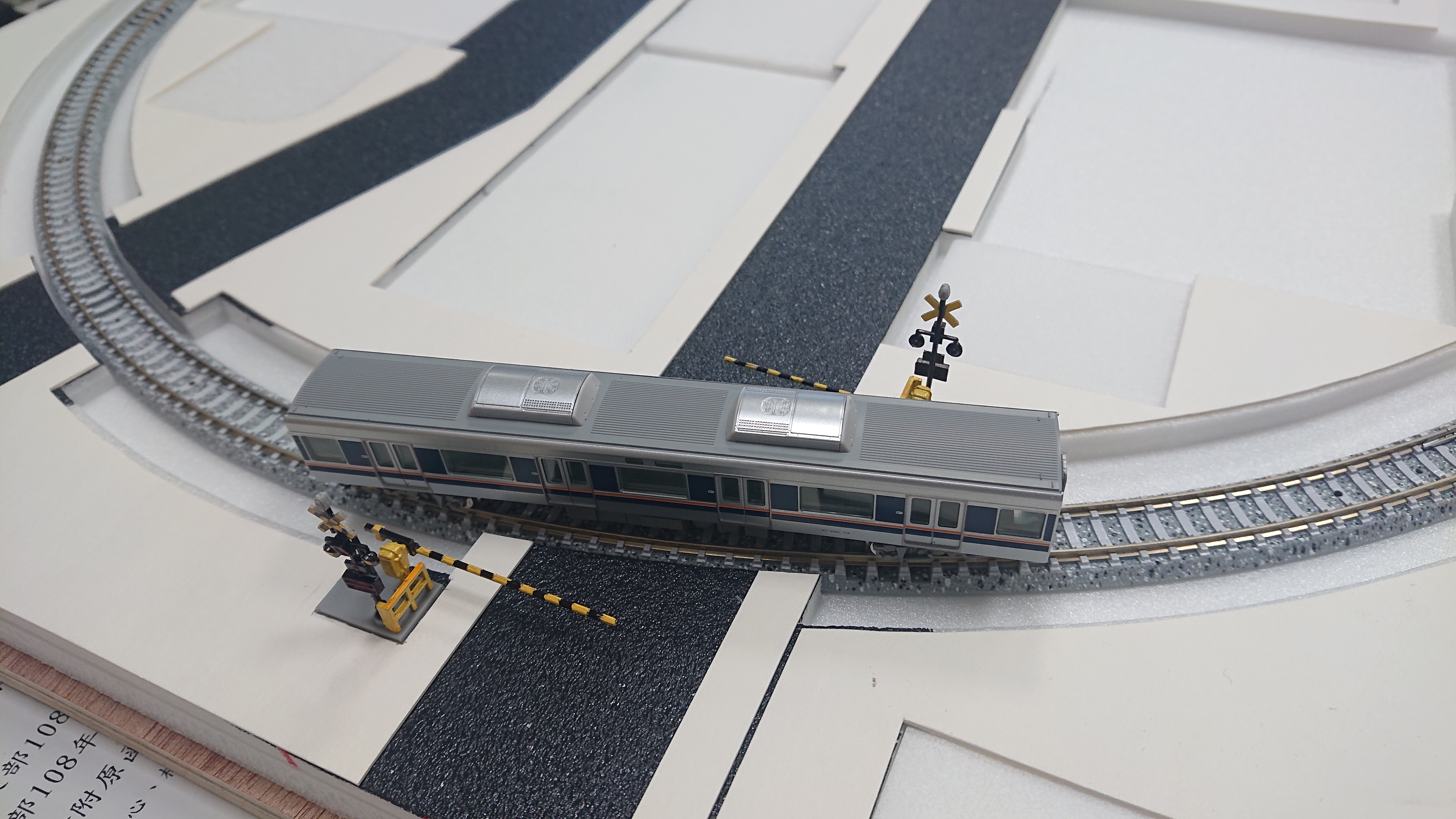 從平交道這邊就可以看到,採用平面式製作的成果,不用像凸面式的還要一塊斜板,汽車可以直接通過,不用爬坡下坡的~