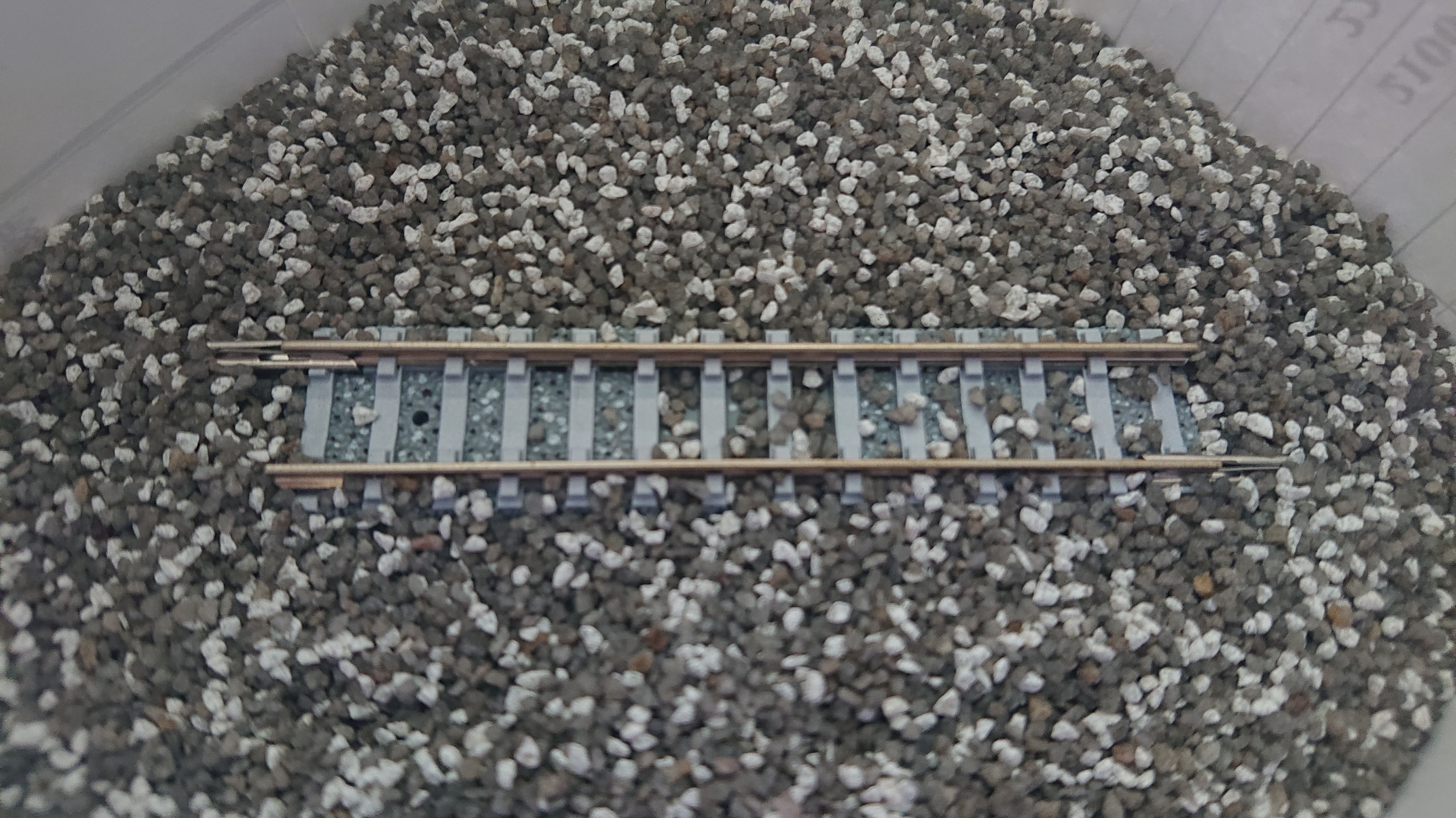道渣的部分,網路上其實可以找到如果鋪設的製作方法,但比較傷腦筋的是,要去哪找那麼細小的碎石,因為我自己本身是念建築的,所以知道美術社有買一種建築模型用的碎石材料