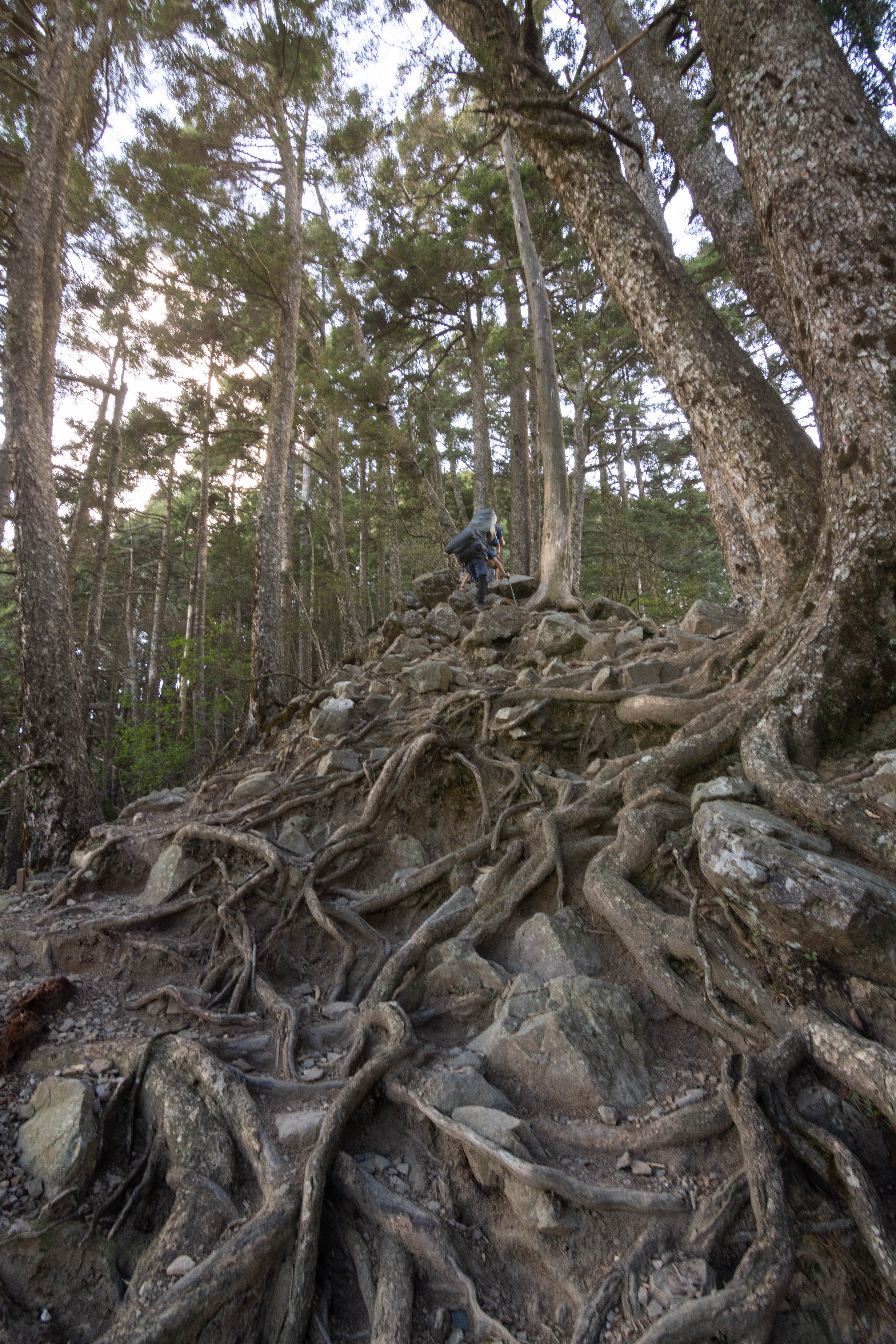 爬山至稜線的過程往往能拍出獨特的石樹輝映,如果畫面中有人當比例尺就更棒了。